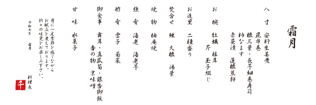※二日前までのご予約をお願いいたします。東京都新宿区神楽坂にある『神楽坂 和食 千』