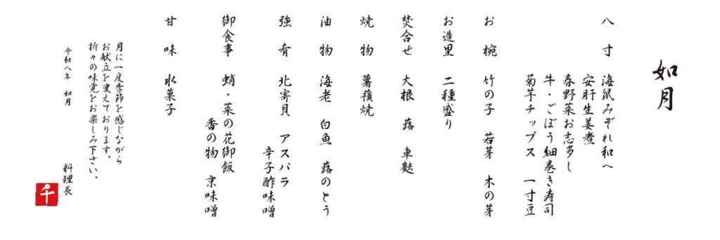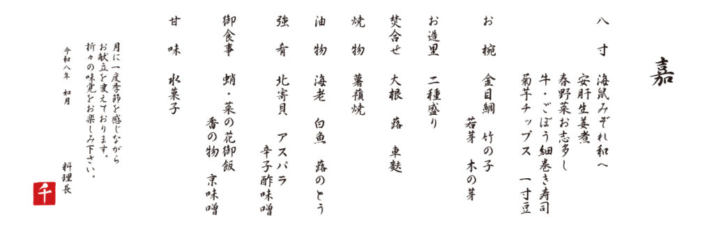 ※二日前までのご予約をお願いいたします。東京都新宿区神楽坂にある『神楽坂 和食 千』