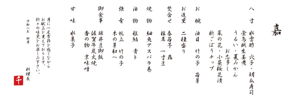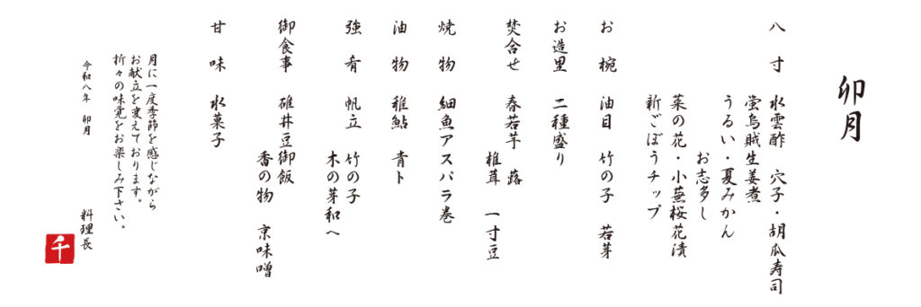 2026年 卯月 メニュー